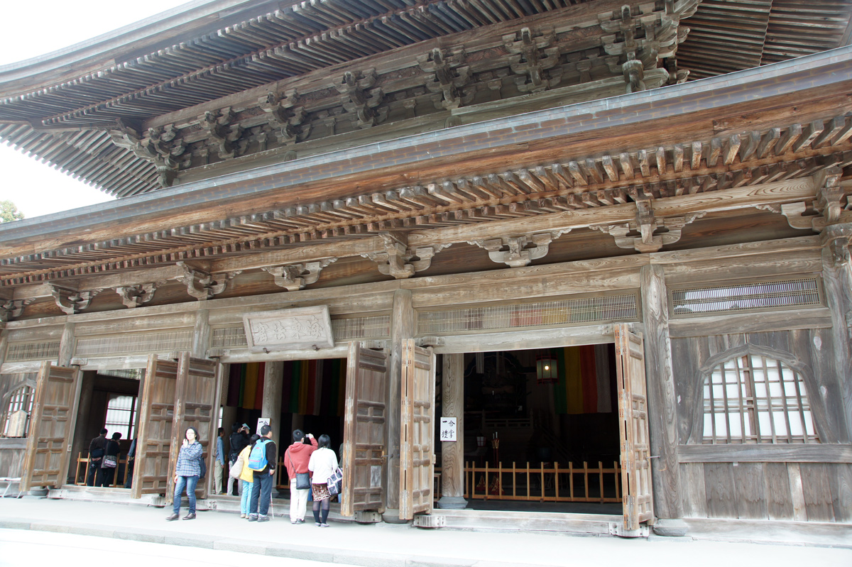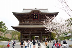 東慶寺から約800m、10分歩いた所に建長寺はあります。総門を抜けると拝観受付(拝観料300円)があり、向い側が御朱印所です。その先には両側に満開の桜が咲く道が三門まで続いています。今回訪れた寺社の中では一番見事でした。法堂内の天井に描かれた雲龍図の筆者は、昨年訪れた京都建仁寺の双龍図も描いた小泉淳作画伯です。鎌倉五山の第一位であるこの寺は格式が高く、唐門・方丈・庭園など見所も多いお寺です。