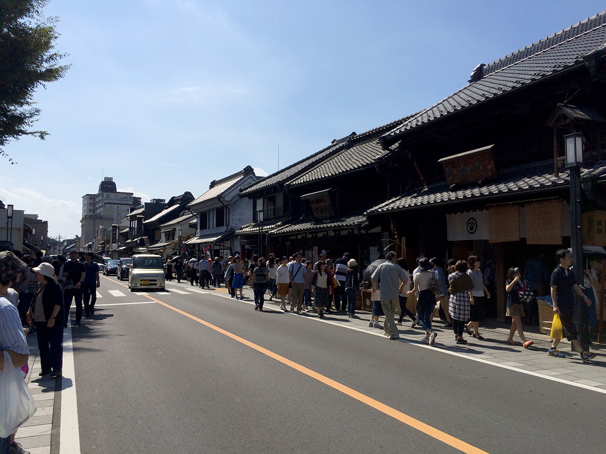まずは「蔵造りの町並み」を北から南へ歩きます。明治時代からの町並みが綺麗に保存されています。町全体に統一感があり、皆で盛り上げていこうという気持ちが見て取れます。「蔵造りの町並み」から少し横に入ると、「菓子屋横丁」やこの辺のランドマークともいえる「時の鐘」があります。それにしても人がどんどん増えてきています。連休だという事もあるかもしれませんが、お祭りなどのイベントがある訳でもないのにこの人出は凄いです。