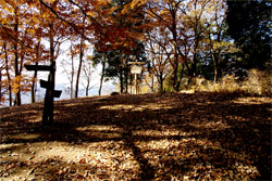 岩畳から500mくらい離れた所に「月の石もみじ公園」があります。真っ赤に染まった(実際には緑の色素が抜けた)もみじが沢山あります。夜にはライトアップされて幻想的な風景を楽しむ事が出来るようです。