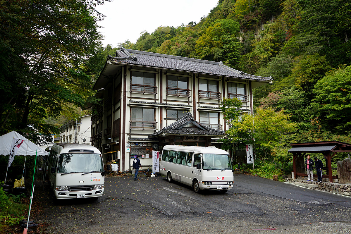 関東最後の秘湯と呼ばれる奥鬼怒温泉には、泉質の異なる4つの秘湯(八丁の湯、加仁湯、日光沢温泉、手白沢温泉)が点在します。奥鬼怒温泉は鬼怒川温泉から40Km以上奥に入った、鬼怒川の源流にあります。自然保護の為一般車両は乗り入れ禁止なので、送迎バスを利用するか1時間以上かけて山道を歩く事になります。 本当ならば7日に鬼怒沼山に登って、八丁の湯に宿泊し8日に帰る予定でした。ただ7日はこの日だけ大雨で、登山どころではありません。8日に登る事も考えましたが、時間的な問題で今回は宿泊だけにしました。 数日前から天気予報は7日が雨なので、登山は諦め前日には午後3時の送迎バスを予約しました。日光から霧降高原を通って女夫渕駐車場まで3時間以上かかります。駐車場に着いた時も雨は強く降っていて、そのせいなのか駐車場から宿まではバスで約30分かかりました。 今回予約した部屋はログハウスツインのベッドルームで、渡り廊下を通った先にあります。トイレ洗面所付きで、部屋も広くて雰囲気も良くゆったりできます。部屋の前は奥鬼怒歩道から来た道で、その向こうには鬼怒川が流れていました。この時点で時間は16時、食事は18時20分からなので風呂に入る事にしましたが、雨がまだ強く降っているので露天風呂は諦め内風呂に入りました。因みに男風呂のシャワーは内風呂に1台有るのみなので、洗髪等はこの時に済ませました。 食事はフロント近くの食堂に用意されています。本館とログハウスの宿泊者では食事内容が違い、この食堂はログハウス宿泊者だけらしいです。食事は地元の旬の食材を使った料理で、追加で頼んだしし鍋もとても美味しかったです。普段は食べる事のない合鴨のしゃぶしゃぶ、岩魚の塩焼き、鯉の天ぷら、鹿肉ステーキ等が味わえて満足でした。 食後少したったら雨が上ったので、急いで露天風呂に向かいました。男性が入浴できる露天風呂は「雪見の湯」「滝見の湯」「石楠花の湯」の3つで全て混浴ですが、21〜22時は女性専用の時間帯になるので注意が必要です。夜は滝がライトアップされて、とても幻想的な雰囲気になります。ただ夜中はそのライトアップは消されてしまうらしいです。空を見ると天気が良い方向に向かっているのか、星が見えていました。その後はカフェで夜のコーヒーを飲み、部屋でゆっくりして眠りにつきました。 翌朝起きた時は雨が少し降っていました。朝食が7時半からなので、その前に朝風呂に入ります。露天風呂をのぞくと誰も入っていなかったので、急いでスマホを持って裸で撮影して回りました。朝食は昨夜の夕食と同じ会場の同じテーブルです。メニューは一般的だと思いますが、宿での食事は美味しく感じ食べ過ぎてしまいます。 朝食後は部屋で少し休み、帰り支度をして8時半にチェックアウトしました。帰りもバスの送迎は利用出来ますが、雨も降っていないので歩いて帰る事にします。ここからは駐車場に向かわず、折角なので日光沢温泉まで行ってみる事にしました。鬼怒川沿いの道を上流へ歩き、10分弱で加仁湯へ到着します。ここも人気の宿で、温泉が良いらしいです。更に10分程歩くと日光沢温泉へ到着です。ここは今までの2軒とは違い山小屋風の宿で、リーズナブルですがバスの送迎はありません。そしてここが鬼怒沼山への登山口になっています。ここまでは緩やかな登り坂でしたが、ここからは本格的な登山道に変わります。次回は是非この先へ進みたいと思います。 今回はここまでにして戻ります。途中で加仁湯の先にある奥鬼怒大橋に寄ってみました。鬼怒川の渓谷を上から眺められるので、隠れスポットかと思います。歩いている途中から青空が見え始め、八丁の湯に戻った時には陽が差してきました。ここで一休みして奥鬼怒歩道に入り女夫渕駐車場に向かいます。この歩道は基本的には登山道と同じで、駐車場までは約3.5Kmの距離で200m程の標高差があります。今回は下りのみ歩きましたが、鬼怒沼山へ登る前にこの道を歩くとそこそこ疲れるのではないかと思います。途中小さな橋の所にコザ池の滝があるので、ここで休憩するのもいいと思います。歩道の終盤は橋を3つ渡ります。最後の橋を渡り終えると上りの階段が現れ、その先は急坂を少し登ります。ここまでほとんど下りだったので、この坂は意外と疲れました。この後は急な坂と階段を下ると奥鬼怒歩道の入口に到着です。逆に考えると、奥鬼怒歩道はこの急登から始まるので最初から疲れるという事です。ここから女夫渕橋を渡ると、すぐ女夫渕駐車場です。駐車場は満車に近い状態で、数台分空いている程度でした。駐車場に着いたのは10時50分で、八丁の湯からは1時間10分程度で着きました。 この後は、川俣ダムと黒部ダムに寄りながら帰路につきました。 |