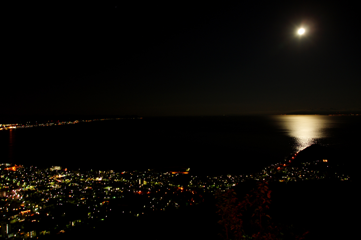この「割烹旅館 若松」は、前回函館に来た時に続いて2回目の宿泊です。海に面した旅館で、部屋数もあまり多くなく静かでゆっくり出来るところが気に入りました。 若松に着いたのが16時半過ぎでまだ明るかったのですが、夜は函館山に行く予定だったので早めに入る事にしました。テェックインを済ませ部屋へ案内されると、抹茶と若松オリジナルのお菓子「松のみどり」でおもてなしを受けます。窓の外には津軽海峡が広がり、正面やや左には下北半島、右手には函館山とその奥には松前半島が見えていました。仲居さんの話によると、この時期の函館は霧が多く出たりしてここまでハッキリ見える事は珍しいそうです。よく見ると下北半島の建物まで見える程、見通しが良かったです。部屋で少し休んだ後、夕食までの間に温泉に入る事にします。2階の温泉浴場には誰も居なくゆっくり入っていられます。露天風呂は目の前が海なので、のんびり海を眺めていると疲れが更にとれる気がします。 夕食は18時から部屋食です。1品1品出てくる料理は、季節を感じさせる食材と盛り付けでとても美味しく頂く事が出来ました。特に海の物は新鮮で、イカ漁が盛んな函館では何と言っても「烏賊ソーメン」が目玉です。なま物の苦手な妻用には、今回も別の料理を用意して頂きました。 夕食が終わったのが19時半ごろ、外はまだ薄暮で函館市街地の光が見え始めて来ています。この後函館山へ出かけるのですが、綺麗な夜景が期待できます。函館山へはバスかタクシーで向かう事になります。今回は函館市内のライトアップも見たったので、タクシーを利用する事にしました。20時に宿を出て函館山に向かいます。タクシーで山を登り始めるとバスやタクシーが連なって走っています。木の間から時々下の夜景が見えましたが、物凄く綺麗です。タクシーの運転手さんも、これだけ綺麗に見える夜景は珍しいと言っていました。山頂の駐車場はバスとタクシーがギッシリとまっていました。展望台は人で溢れかえっており、何重もの人の列ができていました。何としても写真は前で撮りたかったので、人が退くのを待って前へ潜り込みました。そこから見る夜景は世界三大夜景のひとつに数えられ、ミシュラン三ツ星に認定される素晴らしい光景が広がっていました。今まで写真や映像で見たどんな夜景よりも綺麗で、一つ一つの光がハッキリ見えるほど澄んでいてました。これは、一生忘れられない景色です。展望台からの眺めを堪能した後は、運転手さんに案内されて展望台とは山頂駅を挟んで反対側の津軽海峡を望める広場へ行ってみました。この日は満月で、その光が津軽海峡に映って何とも幻想的な風景でした。特に今回の満月はスーパームーンと言って地球と月の距離が近くなり、見かけの月の大きさが最大級になる日だったらしいです。そのお陰なのかもしれませんが、海に映る月の光が輝いていました。これで前回は霧で見る事が出来なかった函館山からの夜景を今回は見る事が出来、リベンジ達成です。函館山には30分程いて山を下ります。帰り道ではライトアップしている所を何ヶ所か回って頂き、宿へ戻りました。大大満足の夜でした。 翌日も空は晴れ渡っています。7時からの朝食はボリューム満点ですが、どれも美味しく気が付くとご飯をお替りして完食していました。この後部屋でゆっくり過ごし、9時ごろチェックアウトします。北海道最終日も天気に恵まれて、良い函館観光が出来そうです。 | |||